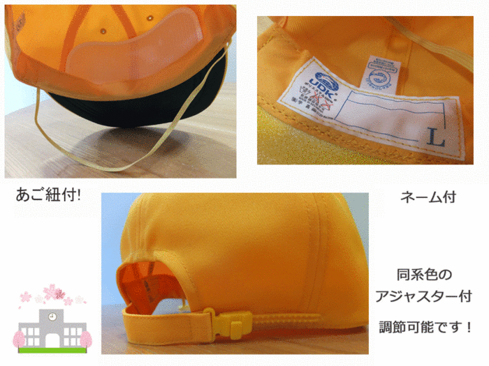 小学生の定番! あご紐付!! アジャスター付!!通学用 黄色のぼうし キャップ型 ★